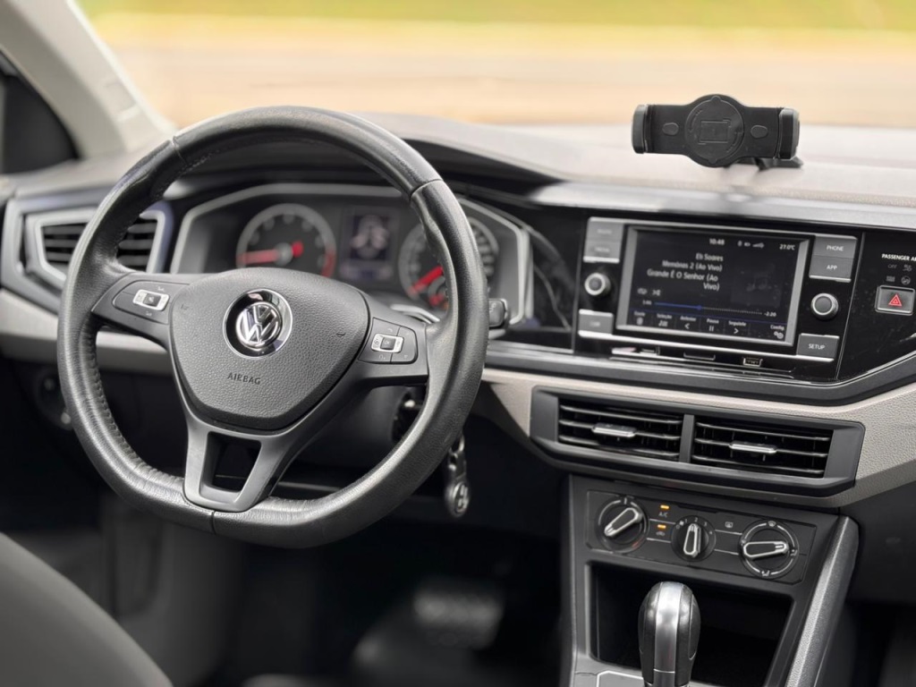 Volkswagen Polo 2018 na versão Comfortline com motor 1.0 TSI Flex, moderno, potente e com a eficiência tecnológica do motor turbo para o dia a dia. Versão completa equipada com câmbio automático de 6 marchas, central multimídia Composition Touch com espelhamento de smartphone, sensores de estacionamento traseiros, freios a disco nas quatro rodas, controles de estabilidade e tração, além de assistente de partida em rampa e rodas de liga leve. Carro com excelente dirigibilidade, nota máxima em segurança e o equilíbrio perfeito entre performance e economia de combustível.